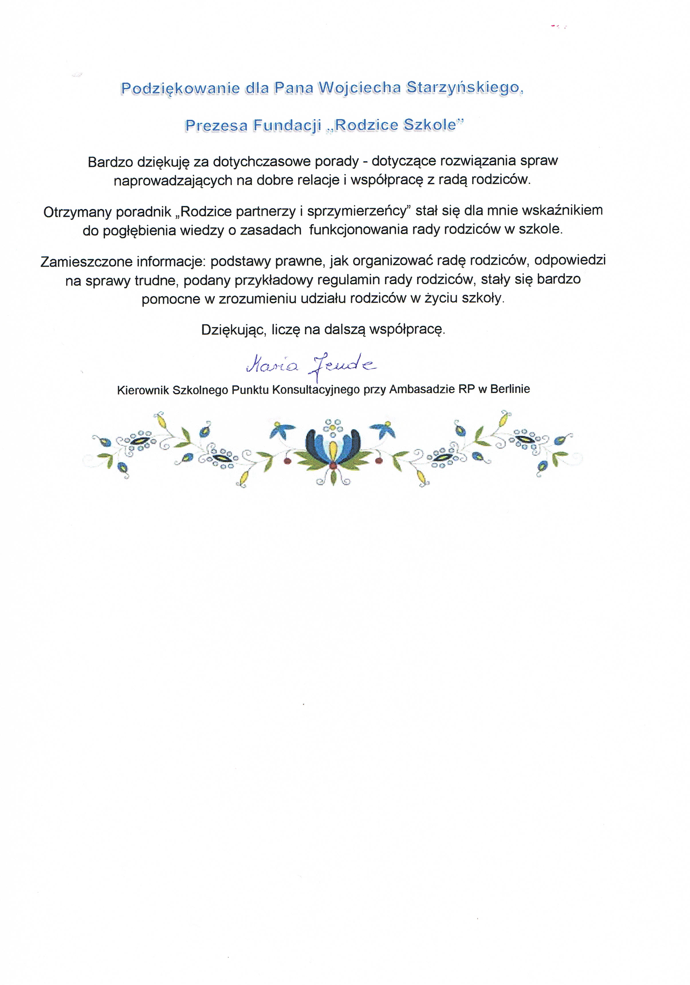 Prezes Zarządu Fundacji „Rodzice Szkole”